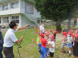 地震を想定した避難訓練をしました。新型コロナウイルス感染症や熱中症の予防にも気をつけながらの避難訓練でした。子ども達の静かで機敏な行動が素晴らしかったです。