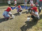 1年生は、チューリップの球根も植えました。「タマネギみたいだね」(*^o^*)