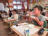 今日の給食に、県産うなぎが出されました。献立名は「うなぎのうなたまどん」です。新型コロナウイルスの影響を受けた県内の生産者を応援するために、県の水産事業として提供されました。子ども達が、いい食べっぷりをしていました。