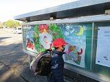 12月ということで「クリスマス」をテーマにしたものです。子ども達が登下校の際に、「あっ、サンタさんだ」「サンタさん、かわいい」と口々に言っていました。