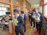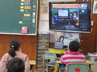 退職・転出する先生方との離任式を、オンラインで行いました。