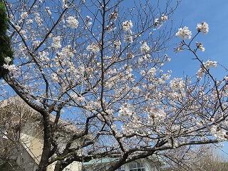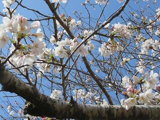 校庭のサクラは、満開のものもあれば、これからのものもあります。