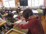 修了式後、各学級では、担任の先生から一人一人の子どもに、あゆみ