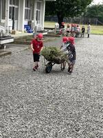 本校保護者の比江島さんのご厚意により、学校の畑を耕していただき、いもを植える準備をしていただきました。