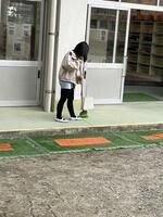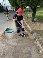 掃き掃除、拭き掃除、草取りなどに意欲的に取り組む児童の姿です