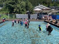 6月に入り、庄内小学校でもプール開きを行い、水泳の授業を始めました。児童は、少し冷たい水に恐る恐る入り、少しずつ水に慣れていきました。顔を水に付けたり、水の中を歩いたりして、久しぶりのプールを楽しんでいました。これから、残り一か月の間に安全に水泳授業ができるように、しっかり取り組んでいきます。