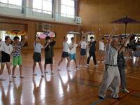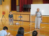 7月17日、6年生が庄内地区に伝わる夫婦(みと)踊りを練習しました。講師は関之尾地区にお住まいの末原鶴雄様93歳、奥様の圭子様86歳です。背筋もシャキッとされて若々しく、とても実年齢とは思えませんでした。まず、夫婦踊りの歴史について話がありました。約700年前から受け継がれている伝統ある踊りであることや、関之尾滝を舞台にした物語から生まれた踊りであることなど、とても興味深いお話でした。次に男子と女子でペアを作り早速踊りの練習です。子どもたちは末原様ご夫婦の踊りを見ながら一生懸命習得しようと頑張っていました。11月のふるさと祭りで披露する予定です。