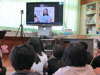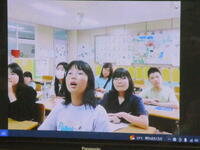 韓国のソウン小学校の児童と本校の4年生がオンラインで交流しました。日本語教室で日本語を学んでいる子どもたちとの交流でした。お互いの校歌を歌ったり、自己紹介をしたりしたあと、ソウン小学校の子どもたちが好きな給食のメニューや好きなキャラクター、休日の過ごし方などについて日本語で質問してくれました。最初は緊張気味だった子どもたちでしたが、すぐにうち解けて、いろいろなことを質問し合い、韓国と日本の共通点や相違点に気づくなど、とても充実した楽しいひとときを過ごしました。