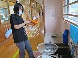 先生方は、子ども達が下校した後、教室の扇風機の掃除をしました。