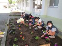 今日は各学級、朝から花壇の植え替えをしました。