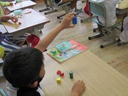 1年生の算数の授業。具体物を使って形の勉強をしました。