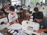 5年生が家庭科で、ミシンを使ってナップザック作りをしています。好きな絵柄の布を購入してナップザックを作るので、出来上がりが楽しみなようです。
