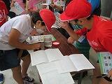2年生が図書室にやってきました。学校図書館サポーターの先生は、2本の大きなスプーンを子ども達に持たせクイズを出しました。「この大きなスプーンを使って、どうやってご飯を食べればよいか、みんなで考えてください。」・・・答えは「お互いに食べさせあう。」です。その後、子ども達は、いつも以上に夢中になって、読み聞かせに聞き入っていました。