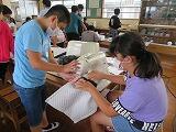 6年生が家庭科でミシンを使ってトートバッグ作りをしています。5年生と同様に、お気に入りの絵柄の布を購入して、トートバッグ作りに取り組んでいるということで、仕上がりが楽しみなようです。お互いに教えあいながら、協力しながら活動しています。