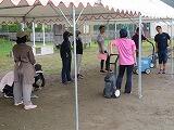 今年の団テントは、下の写真のような配置です。写真右側が白団、左側が赤団です。