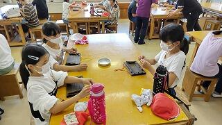 今日は研究授業の日でした。3年生は体育、6年生は算数の授業でしたが、両学年ともに1人1台導入された端末を活用した授業でした。