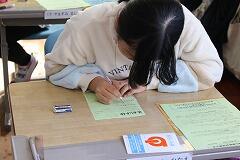 あちこちの机で、親子で顔を寄せ合い、相談する姿が見られました。保護者の方も「けっこう難しいね」「あ、この漢字じゃない?」と、子どもたちと一緒に本気モードに。