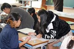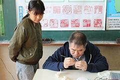 ◇普段、あまり使わない道具と細かい作業に苦戦しながらも、ものづくりマイスターの先生方が一人ひとりの席を回り、持ち方や力の入れ方を優しく指導してくださいました。