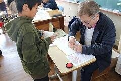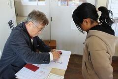 彫り終えたら、朱肉をつけて紙に押す「捺印」の工程です。初めて紙に自分の作品を押す瞬間は、期待と少しの緊張が入り混じります。講師の先生が、朱肉を丁寧に付けて紙の上にくっきりと自分の彫った文字が浮かび上がると、「やったー!」、「きれいにできた!」と歓声が上がりました。なかには、捺印をしてもらう前に講師の先生に仕上げの確認をしていただく場面も見られました。