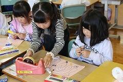 11月20日(木)、5年生が宮崎県職業能力開発協会主催の「ものづくり体験」事業に参加し、日本の伝統技術である「印鑑づくり(印章彫刻)」に挑戦しました。