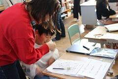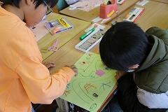 ◆楽しかったね! 1年生に優しく迷路の書き方を教えたり、キャラクターの作り方を手伝ったりする2年生の姿が見られました。「ねこのキャラクターの裏にクリップを貼るんだよ。」、「そーっと、裏から磁石で動かしてみて。」と声をかけると、1年生も真剣な表情で挑戦。無事にゴールできた時には、「やったー!」と歓声が上がっていました。