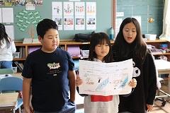 【初めての挑戦 5年生】 5年生にとっては初めてのプレゼン発表。開始前は緊張でドキドキしている様子が伝わってきましたが、いざ始まると堂々とした発表を見せてくれました。 5年生からは2つの班がエントリーしました。