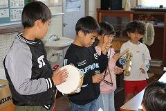他のお友だちも、 (シャン、シャン♪) と涼しげなすずの音や、(カン、カン!) と元気なウッドブロックの音など、 それぞれの楽器の「いい音」を見つけて響かせました。