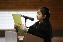 【3年生代表児童による「新年の決意」】 始業式では、3年生の代表児童2名が、3学期の目標を堂々と発表しました。