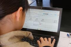 3年生の教室では、カチカチとキーボードを叩く心地よい音が響いています。画面をのぞいてみると、そこにはカラフルに色分けされた自分専用の計画表が。