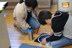 星座早見盤で協力:「この日のこの時間は……ここかな?」と、床に早見盤を広げて友達と操作を教え合う姿が見られました。