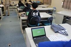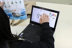残りの児童は、画面に刻一刻と描かれる絵を見て、正解の単語をタイピングします。