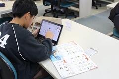 デジタルツールでクイズを進めながら、わからない単語はすぐに紙の辞書で調べる。アナログとデジタルを上手に使い分ける姿は、さすが最上級生です。