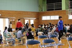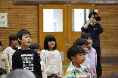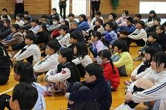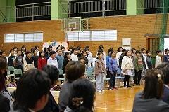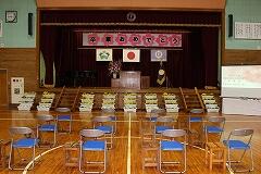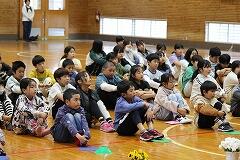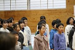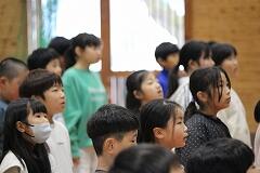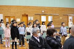その後、全校児童で「菓子野小学校校歌」を歌い上げました。体育館に響き渡る子どもたちの歌声は、先生方への何よりのプレゼントになったはずです。