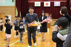 式の最後には、児童代表から感謝の花束が贈られました。「先生、ありがとうございました!」、「新しい学校でも頑張ってください!」とはにかみながら花束を渡す姿に、会場は温かな空気に包まれました。