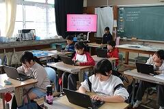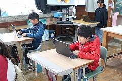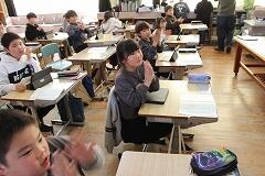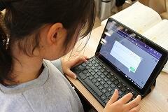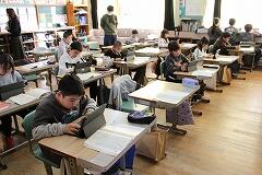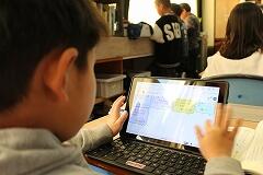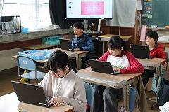 2月20日(金)は、本年度最後の学校参観日です。 4年生の教室をのぞいてみると、いつになく真剣な表情の子どもたち。指先を軽やかに動かし、タブレットで何かを作成しています。