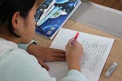 そんなつぶやきが聞こえてきそうなほど、子どもたちは真剣に鉛筆を動かしています。比喩や擬声語・擬態語を使いながら、自分にしか見えていない砂漠の世界を言葉に落とし込んでいきました。