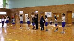 丸(゜)と棒(ー)を上手に組み合わせて正解を見つけ出すと、体育館は出番以外の子どもたちの大きな拍手に包まれました。 続いて出されたのは「たいこん」のカード。