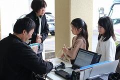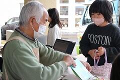 選んだ本を持って受付へ。「お願いします!」と元気にあいさつし、スタッフの方とやり取りをする時間も、子どもたちにとっては大切なコミュニケーションの場。丁寧に本を扱ってもらう様子を見て、子どもたちも本をより一層大切にしようという気持ちが芽生えているようです。