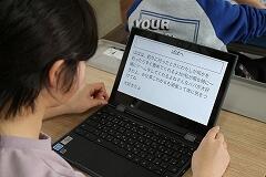 「読みたい本が棚にないなぁ…」そんな時は、設置されたパソコンの出番です。 画面を真剣に見つめ、マウスを操作して本の貸出状況をチェック。「あ、今は貸出中だ。じゃあ予約しよう。」と、自分で判断して予約カードを書き進める姿が見られました。ICTを使いこなし、自分の読みたい本を主体的に探す姿に、大きな成長を感じます。