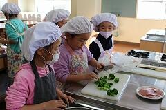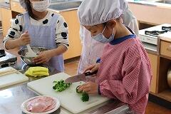 包丁を使ってブロッコリーを細かく刻む作業では、周りの友達も「猫の手だよ。」、「ゆっくりね。」と声をかけ合い、安全に気をつけて進めることができました。