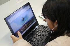 端末からは英語の音声が流れます。「playground」という声が聞こえると、画面に表示された「運動場」、「プール」、「図書室」などの選択肢から、これだっ!と思うものをタップ!