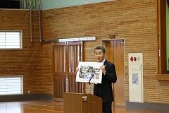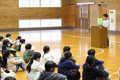 最後に、全体会として今現在の登校班の課題と、これから気をつけるべきポイントを確認しました。特にこれからの季節は、寒さから「ポケットに手を入れたまま歩く」、「フードを深く被って周りが見えにくくなる」といった危険が増えます。全体の話を聞く子どもたちの背筋はピンと伸び、その眼差しからは「明日からも無事故で登校するぞ」という強い意志が感じられました。