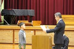 式の最後には、スポーツや文化面、日々の活動で輝かしい成果を収めた児童の表彰を行いました。賞状を受け取る誇らしげな表情からは、これまで積み重ねてきた努力への自信が溢れていました。