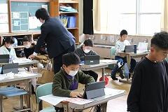 一方で、手元の紙のプリントで考えを整理してからタブレットに入力するなど、「アナログ(手書き)」と「デジタル(ICT)」を上手に使い分けている姿も印象的でした。画面とプリント、両方を見比べながら真剣にペンを走らせる姿も見られました。