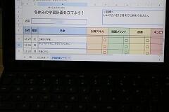 3年生の教室では、カチカチとキーボードを叩く心地よい音が響いています。画面をのぞいてみると、そこにはカラフルに色分けされた自分専用の計画表が。