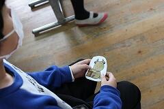イヤホンを耳に当てて真剣に音を聴き取る子、正解して思わず小さなガッツポーズをする子。教室中が心地よい緊張感とワクワクした熱気に包まれていました。