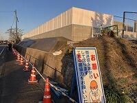 プールの土手の工事が始まっています。道路に面した部分です。それに伴い、歩道のプール側が通れなくなり狭くなっています。しばらくの間ご迷惑をおかけしますが、御協力をお願いします。