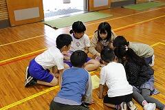 通学合宿3日目、宿泊は最終日になります。学校から御池青少年自然の家に着いたら、自主学習と今回の通学合宿の感想文を書きました。その後合宿修了式を行い、所長さんからお話をいただき、みんなで感想を発表し合ったそうです。今日のお楽しみは、夕食後に体育館でレクレーションを行います。みんなで話し合った結果、『ドッヂボールと鬼ごっこ』になりました。6年生がリーダーシップをとって画像にありますように17人で体育館を思いっきり使わせていただいたようです。その後、入浴、就寝となりました。3泊4日間の通学合宿は、子どもたちにとって異学年での連帯感が深まり、思いで深い貴重な自然・生活体験ができました。このような機会をもうけていただきありがとうございました。
