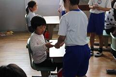 今回は、低学年の運動会予行練習の様子を紹介します。低学年のプログラムは、玉入れ、1・2年合同全員リレー、80m走です。特に玉入れでは、子どもたちがかごに向かって玉を入れている最中に音楽が変わります。今まで玉を入れていた姿が180度向きを回転して観客の方を向いて1・2年生が踊り出し、そのかわいらしい踊りには、ほっと心が和みます。80m走やリレーでは、一生懸命走っている姿を見ると全員に拍手をおくり応援したくなりました。保護者の皆様、地域の皆様26日は、子どもたちに応援をよろしくお願いします。