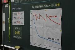 5年生は社会科で日本各地の気温と降水量の違いをグラフから読み取っていました。班ごとに調べたい都市のグラフを選択し、その特徴を発表していました。冬に降水量が多い都市、年間をとおして気温が高い都市、冬に降水量が少ない都市など自分たちが調べたことを大型テレビに映しながら発表していました。赤い枠で囲んでいるところは、発表の時に児童のタブレットから大型モニターに画像を転送して発表している場面です。児童は、自分のまとめたことをワイヤレスで簡単に大型モニターに映していました。